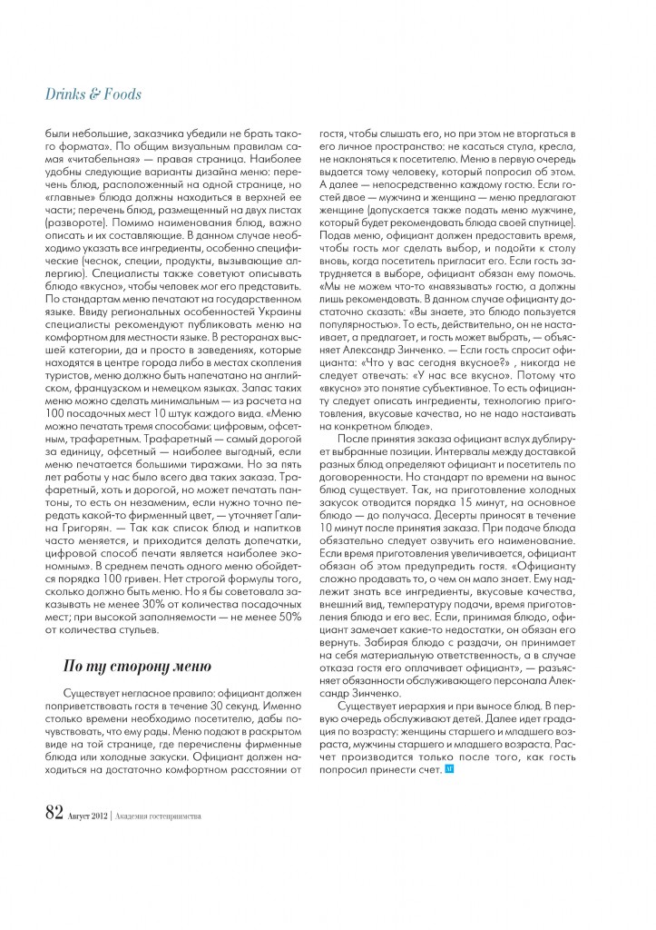 Журнал «Академия гостепреимства», №4 (Август) 2012 года, Киев